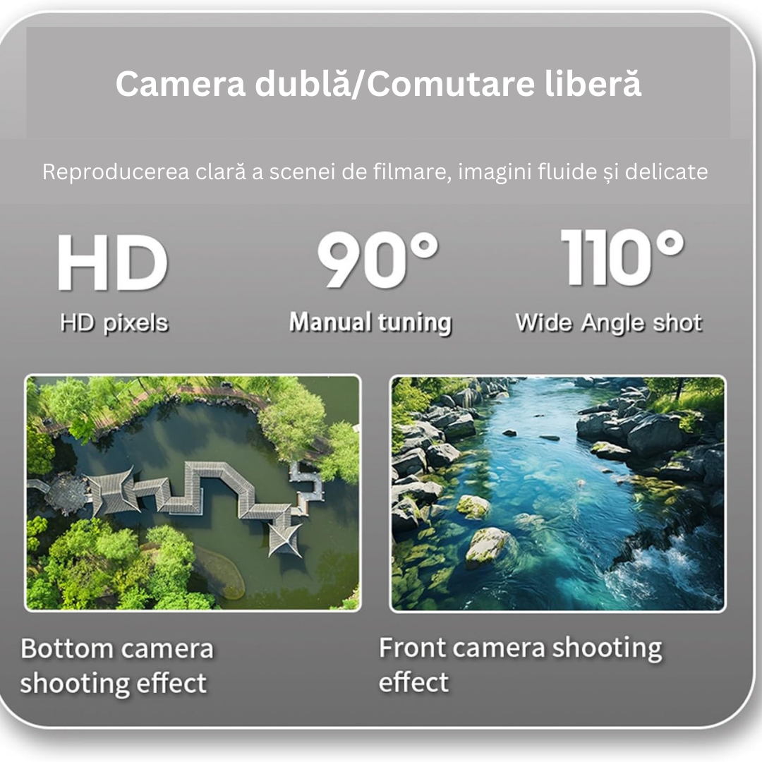 📷 Camera: 4K, FOV 120° unghi larg; Distanța de control: 100m