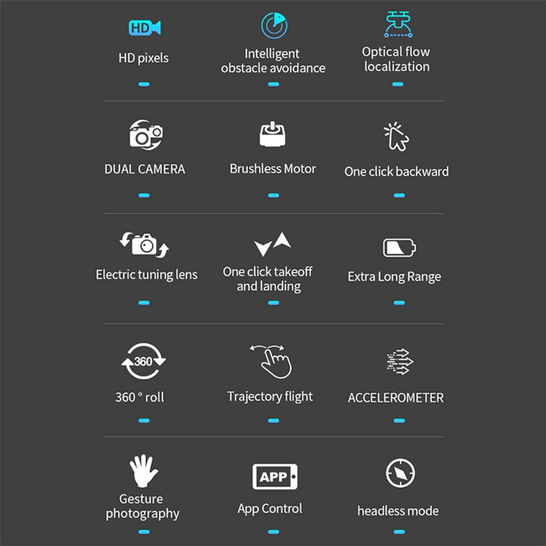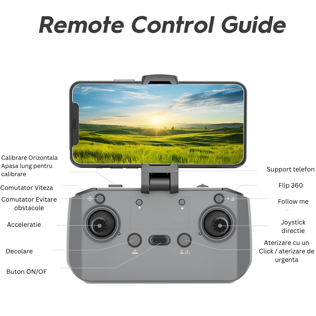 🌐 Funcții: Poziționare GPS, Menținere altitudine, Mișcare orbitală, Mod follow me, Intorcere cu un clic.
