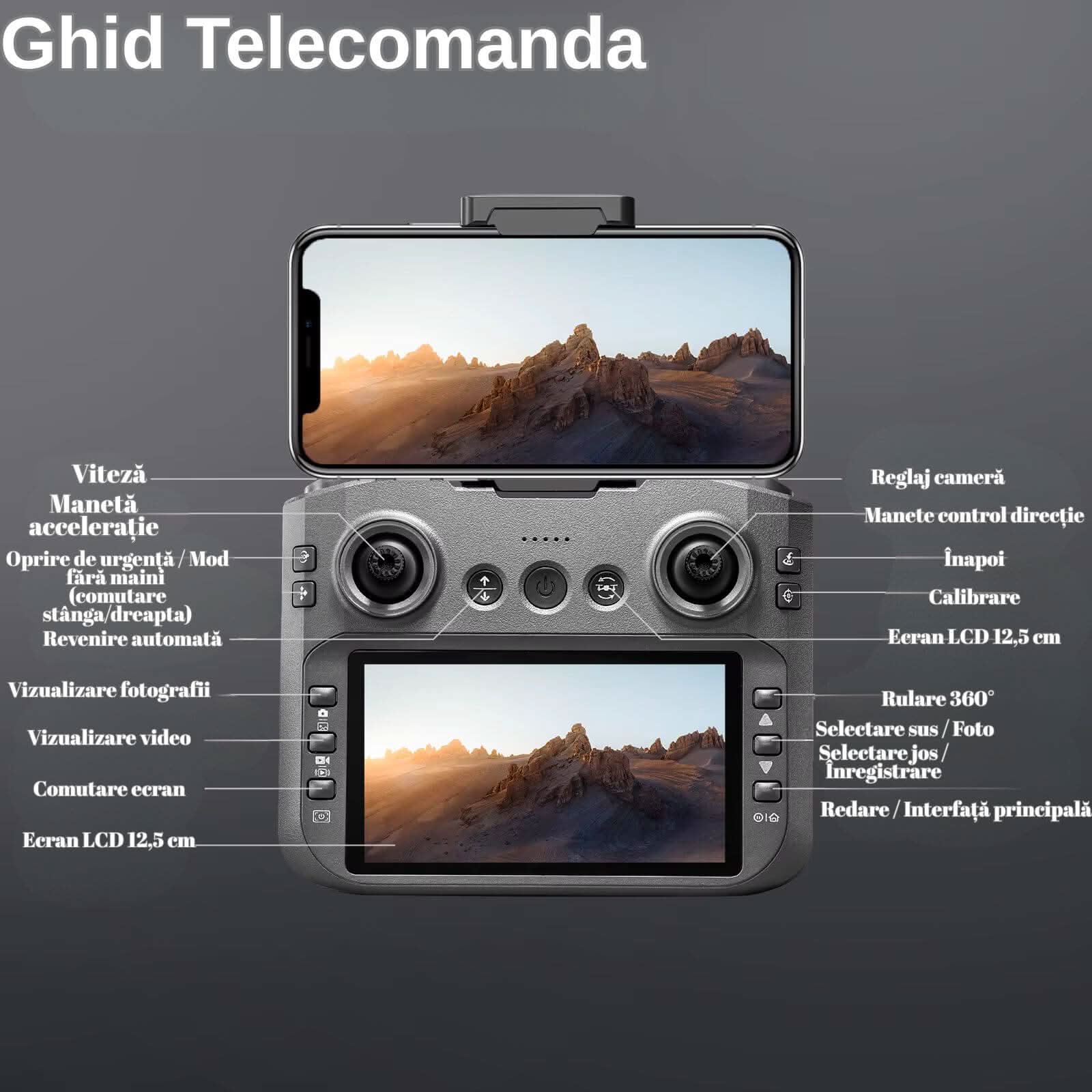 🌐 Funcții: Poziționare GPS, Menținere altitudine, Mișcare orbitală, Mod follow me, Intorcere cu un clic.
