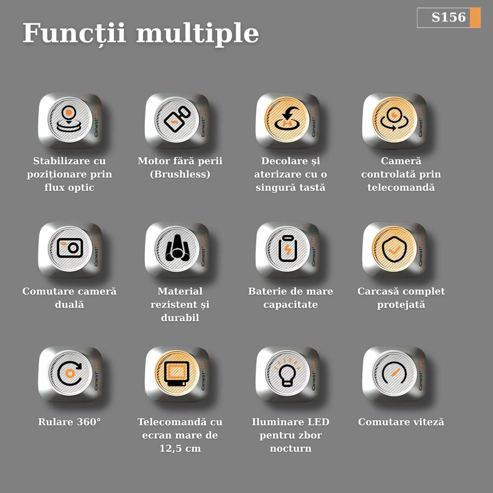✅ Drona S156 îmbină performanța unui motor brushless cu funcții inteligente și cameră de înaltă rezoluție, oferindu-ți o experiență de zbor stabilă, sigură și distractivă.